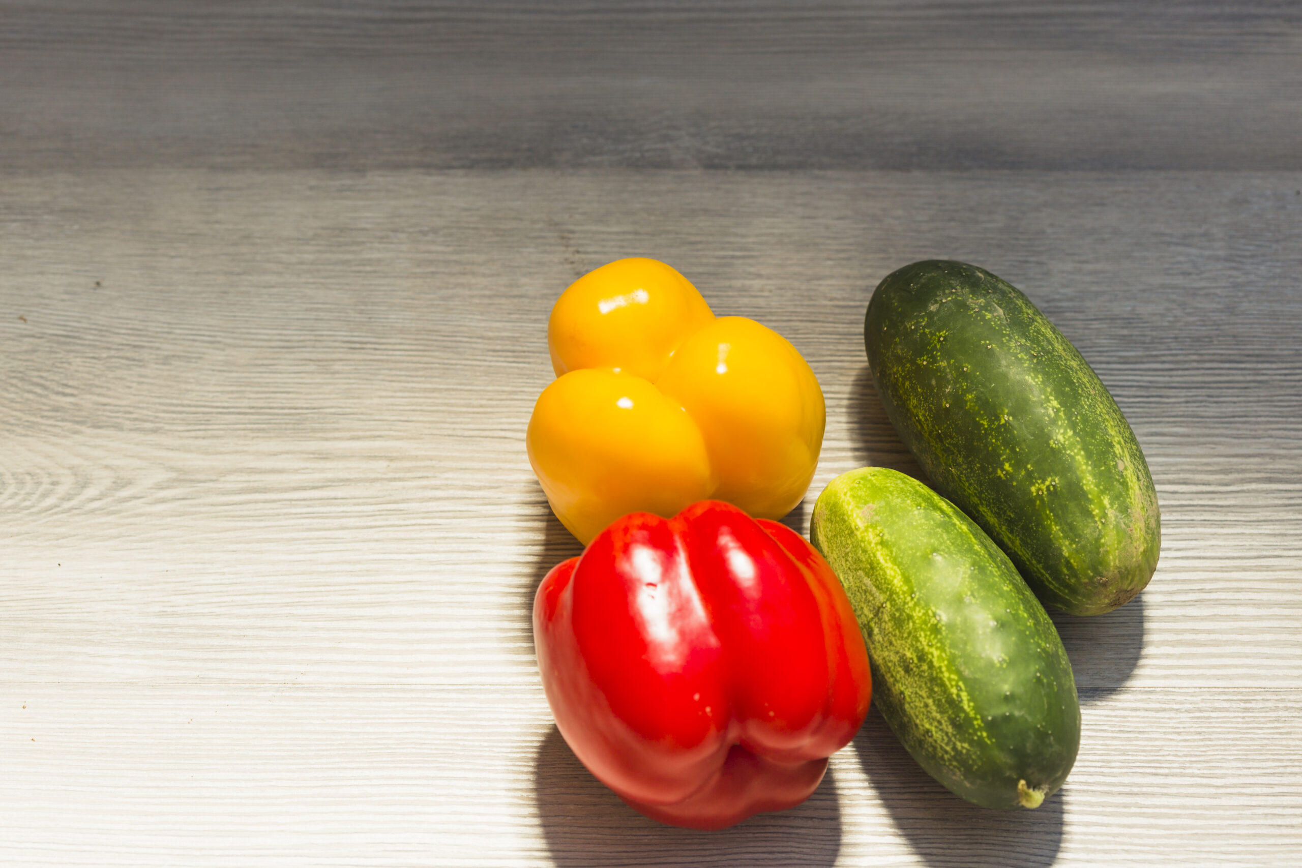 1. Agurkus, paprikas ir morkas nuplaukite. Agurkus ir paprikas supjaustykite griežinėliais, o morkas sutarkuokite stambia tarka.