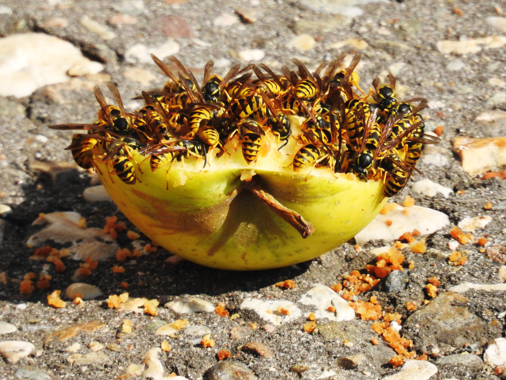 Sode vapsvos dažniausiai pasirodo tada, kai pradeda nokti vaisiai, uogos arba kai šalia yra komposto krūva. Pamenu, kaip rugpjūtį po obelimi tekdavo rinkti nukritusius obuolius kasdien – jei palikdavai ilgiau, vapsvų būrys garantuotas. Sodas vapsvoms yra ne vieta poilsiui, o maisto šaltinis, todėl atbaidymas čia reiškia ne jų vaikymą, o maisto prieinamumo ribojimą.