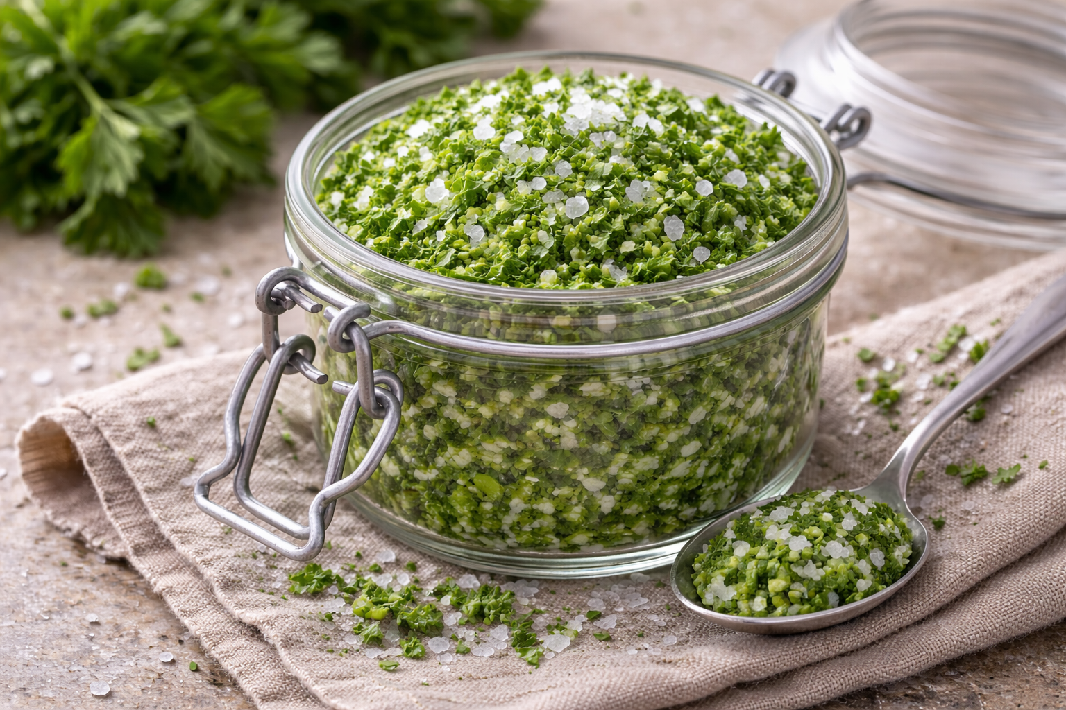 Petražolės su druska – paprastas ir praktiškas būdas išsaugoti šviežių žolelių aromatą ilgesniam laikui. Tai natūrali konservavimo technika, kai druska veikia kaip drėgmę ištraukianti ir mikroorganizmų dauginimąsi stabdanti medžiaga. Tinkamai paruoštos petražolės išlaiko spalvą, kvapą ir gali būti naudojamos sriuboms, padažams ar troškiniams gardinti.