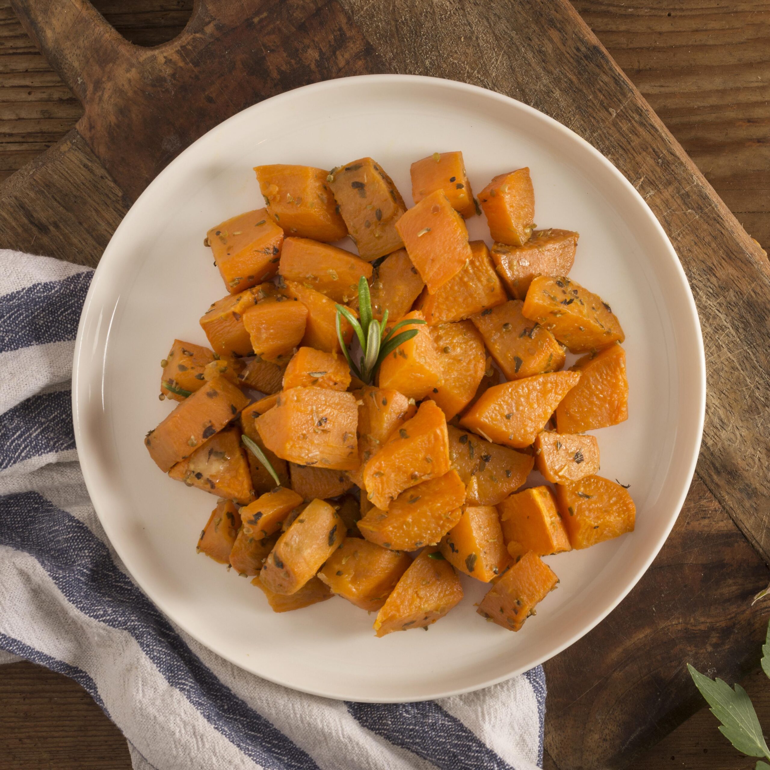 - Moliūgą nulupkite, išimkite sėklas ir supjaustykite kubeliais.