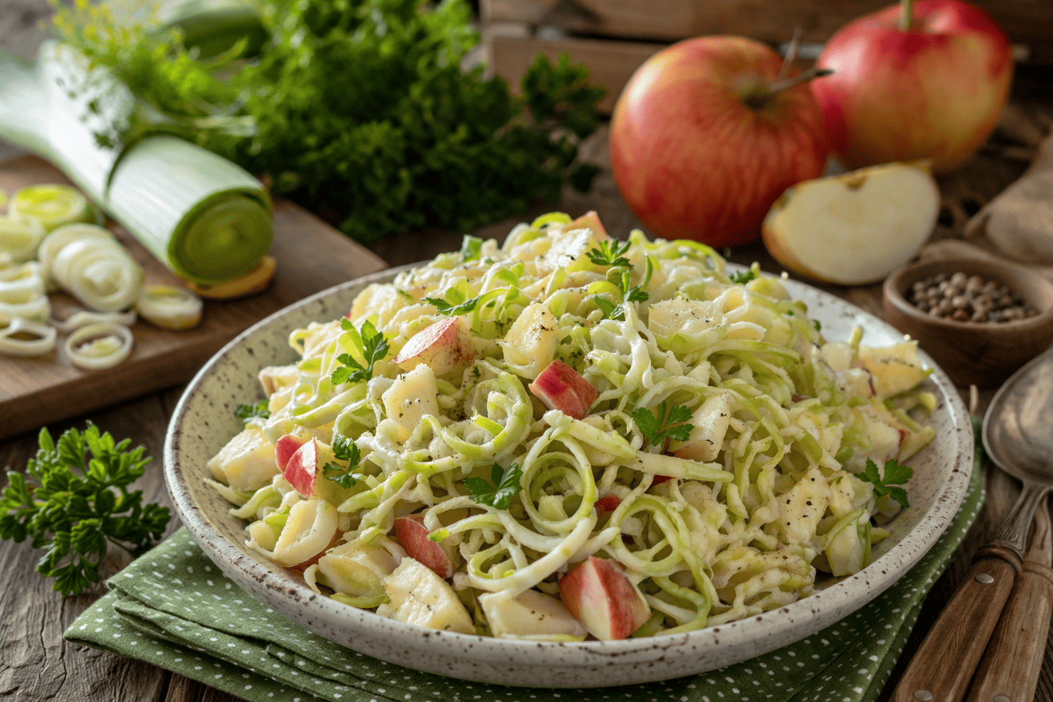 Porų salotos su obuoliais – skonis, primenantis rudenį
