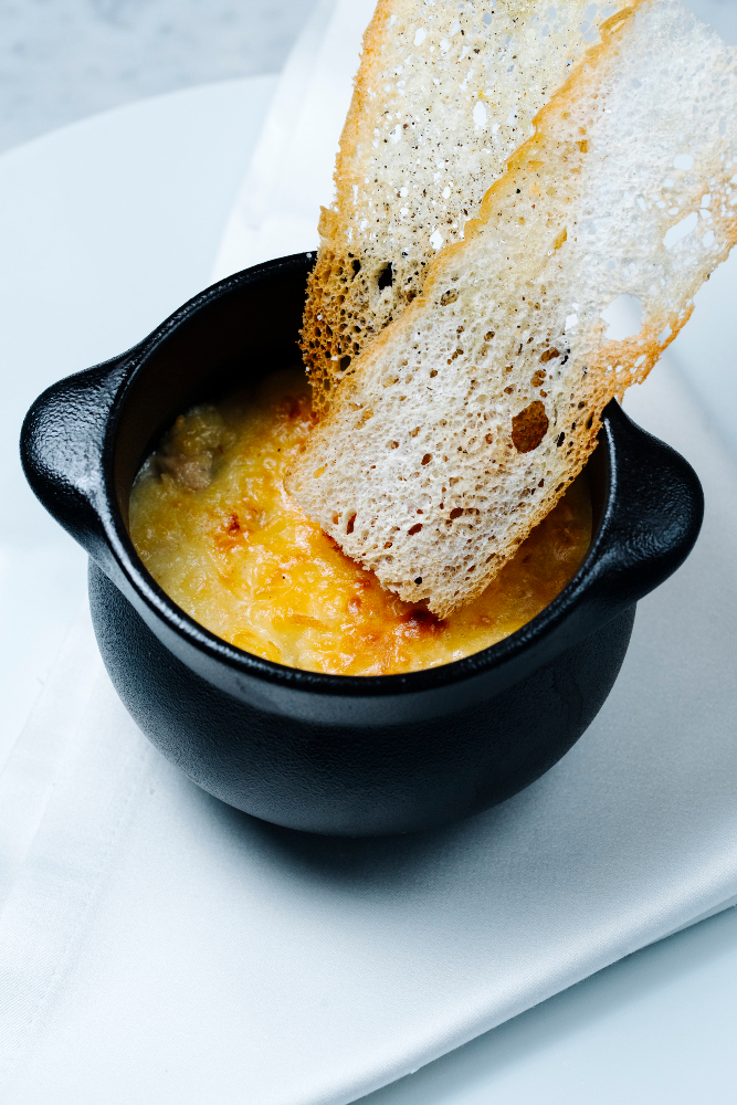 Prancūziška svogūnų sriuba pati savaime yra sotus ir išskirtinis patiekalas, bet galima ją praturtinti.