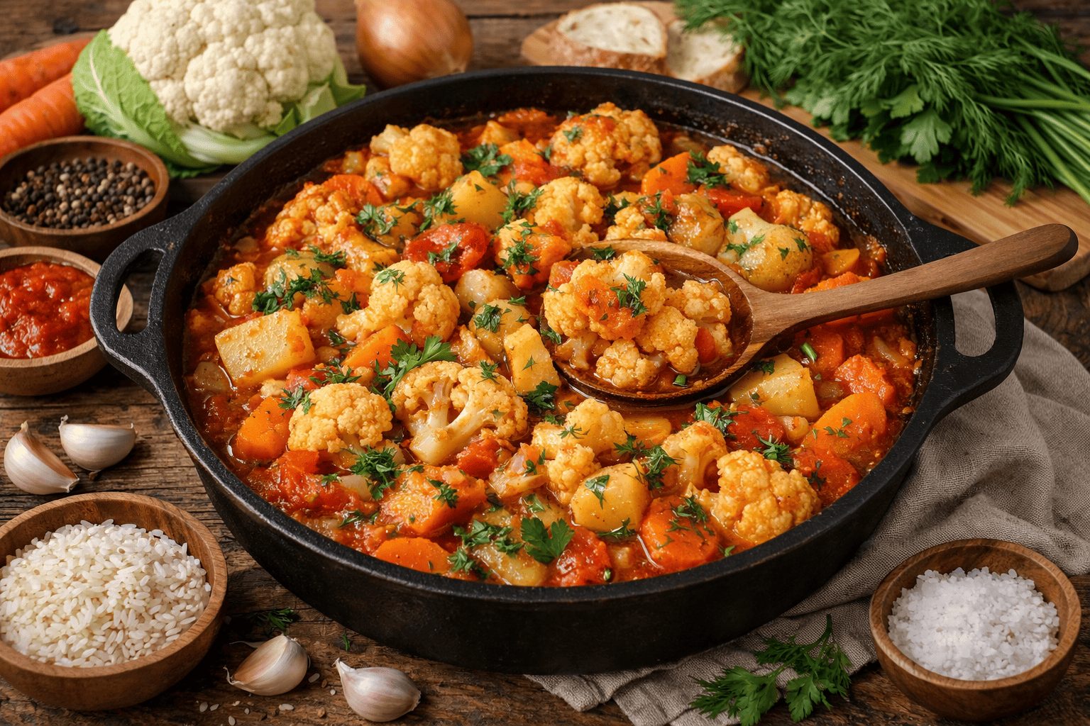 Žiediniai kopūstai dažnai nuvertinami, nors iš jų galima pagaminti tikrai gardžių patiekalų. Šis troškinys – paprastas, sotus ir labai tinkantis kasdieniams pietums. Jame dera natūralus daržovių saldumas, lengvas prieskonių aromatas ir maloni, švelni tekstūra.