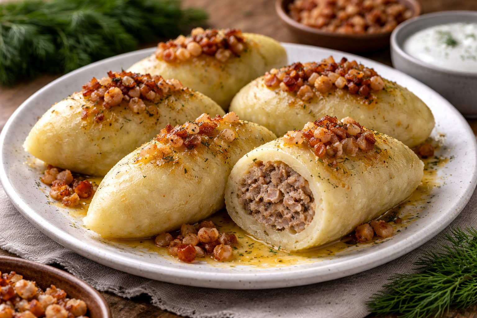 Virtų bulvių cepelinai su mėsa tradiciškai patiekiami su spirgučių padažu arba grietine. Norint sodresnio skonio, galima užpilti lydytu sviestu su apkepintais svogūnais. Svarbu nepervirti – per ilgai verdami cepelinai gali pradėti irti. Jei tešla per minkšta, įdėkite šiek tiek daugiau krakmolo, tačiau nepadauginkite, kad tekstūra išliktų švelni.