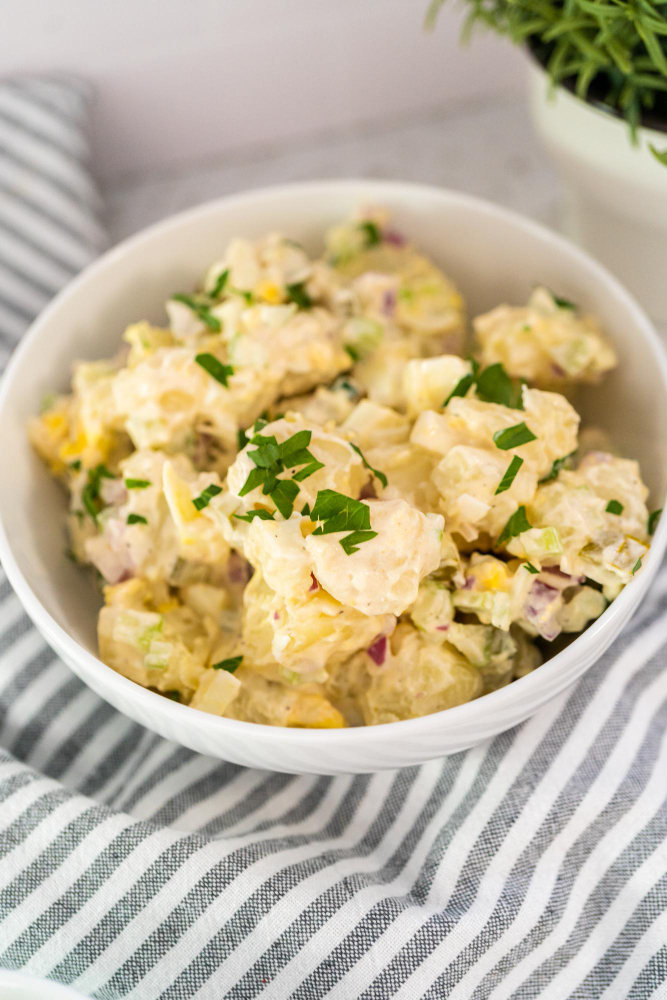Seniau, kai majonezas buvo retenybė, močiutė šias salotas ruošdavo su grietine, kietai virto kiaušinio tryniu ir šlakeliu acto. Jeigu nori lengvesnės versijos – vietoje majonezo dėk jogurto su šlakeliu garstyčių, gausis gaivesnis variantas.Ketvirta – sezoninės variacijos